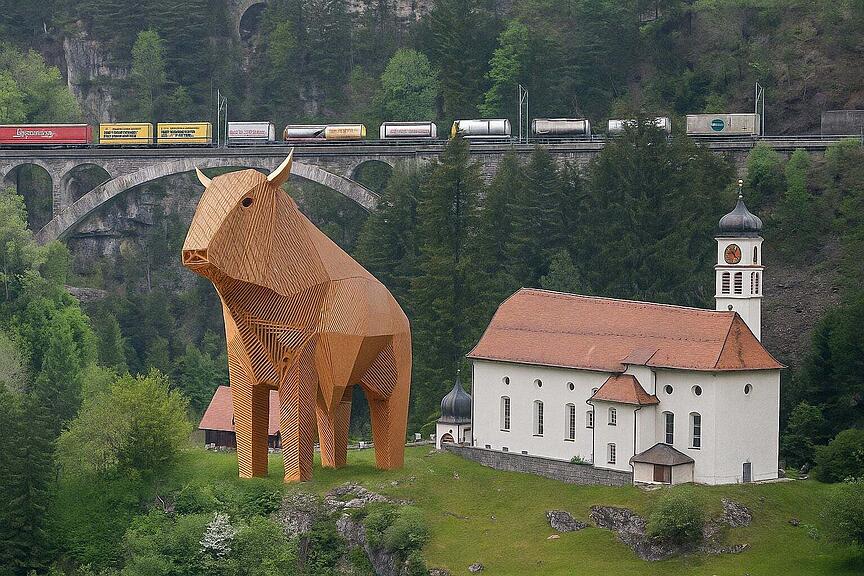 Wie geht es dem «Chileli vo Wasse»? Vermutlich leidet seine Seele. Über Jahrzehnte bestaunten es ungefähr 10’000 Menschen pro Tag aus dem Zug heraus. Von unten. Von der Seite. Von oben. Jetzt sind es wegen des Gotthard-Basistunnels nur noch etwa 1000 pro Tag. Zeit für etwas Seelenmassage! Deshalb muss Muni Max Nachbar werden. Dann richten wieder mehr Menschen ihren Blick auf die berühmteste Klein-Kirche der Schweiz. Und etwas Entschleunigung gibt’s gratis dazu.