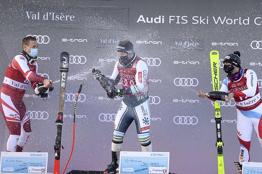 Für alle drei wäre es der erste Sieg im Weltcup gewesen. Für den Slowenen ist es gleichzeitig das erste Mal, dass er aufs Podest fährt. Striedinger hat nun vier, Kryenbühl zwei Podestplätze vorzuweisen. Vor einem Jahr war der Schweizer in der Abfahrt Bormio Zweiter geworden.