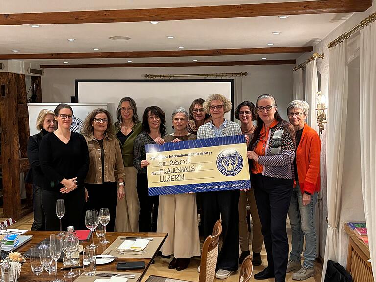 Der Soroptimist Club Schwyz hat dem Frauenhaus Luzern eine Spende von 2600 Franken überreicht. Die Übergabe erfolgte im Rahmen eines Clubmeetings anlässlich der Orange Days, bei dem die Mitglieder die Bedeutung eines sicheren Zufluchtsorts für Frauen und Kinder in schwierigen Lebenssituationen hervorhoben.