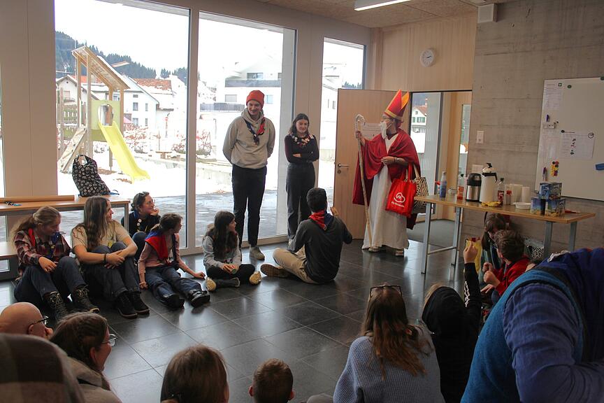 Das Highlight war dann der Samichlaus, der die PTA Mythen am späteren Nachmittag noch besuchte. Alle Pfädlerinnen und Pfädler wie auch das Leiterteam wurden einzeln aufgerufen und durften zum Samichlaus. Die individuellen Fähigkeiten der Pfädler wurden von ihm hervorgehoben, und alle wurden reichlich beschenkt mit Nüssli, «Manderindli» und ganz viel Schokolade. (zvg)