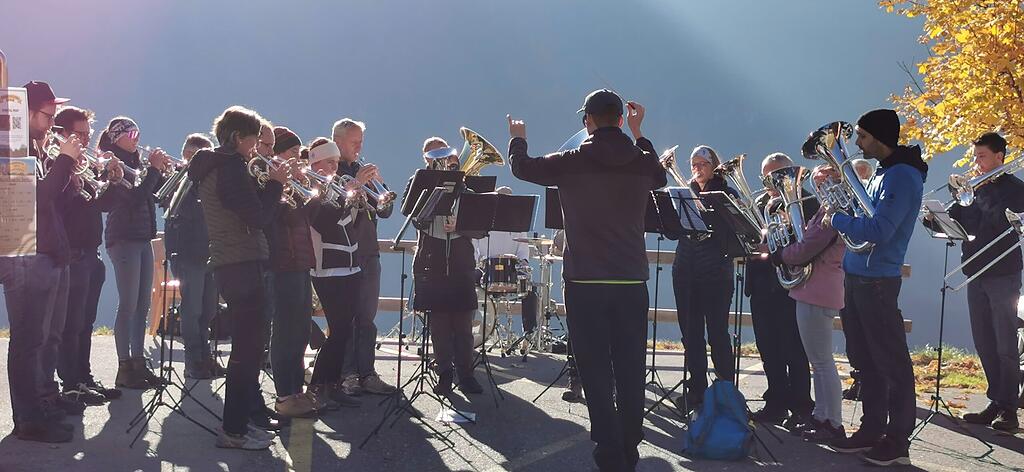 Kürzlich startete die Brass Band Musikgesellschaft (MG) Willerzell ihre musikalische Reise ins Engadin, mit bester Laune und vollen Instrumentenkoffern. Nach einem kurzen Halt im Heidiland und der Fahrt über den imposanten Flüelapass erreichte die Gruppe das idyllische Bergdorf Tschlin. Während einige durch die schmalen Gassen schlenderten und den herrlichen Blick ins Tal genossen, genehmigten sich andere bereits das erste Engadiner Bier, schliesslich wollte man gut vorbereitet ins Bergbierfestival starten.