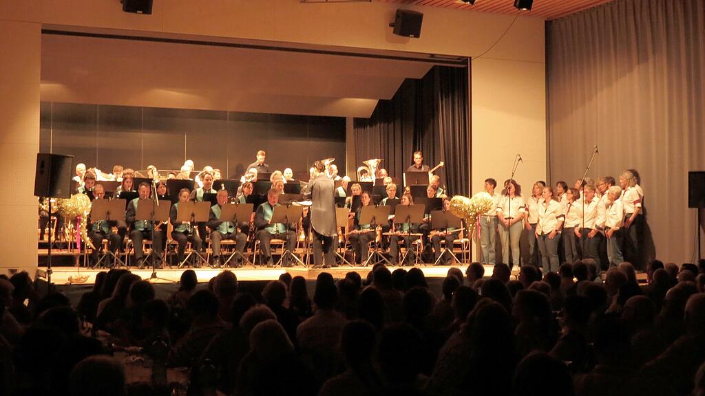 Die Musikgesellschaft Steinen gemeinsam auf der Bühne mit der JodelStimmig Steinen.