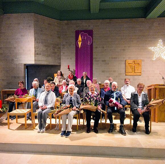 Am Nachmittag des Ersten Adventssonntags versammelten sich die Delegierten des Kantonalen Kirchenmusikverbands Schwyz zur jährlichen Versammlung. Die 103. Versammlung fand dieses Jahr in Brunnen in der Theresienkirche statt. Nebst den Sachgeschäften waren wie immer die Ehrungen für langjährige Sängerinnen und Sänger ein Höhepunkt. Gleich 27 Jubilarinnen und Jubilare durfte Präsident Lorenz Bösch nach vorne bitten und ihnen die verdienten Gaben überreichen. Josy Lacher aus Einsiedeln und Paul Guntlin aus Wangen (erste Reihe rechts) wurden für 70 Jahre treue Mitgliedschaft in ihren Chören geehrt. (zvg)