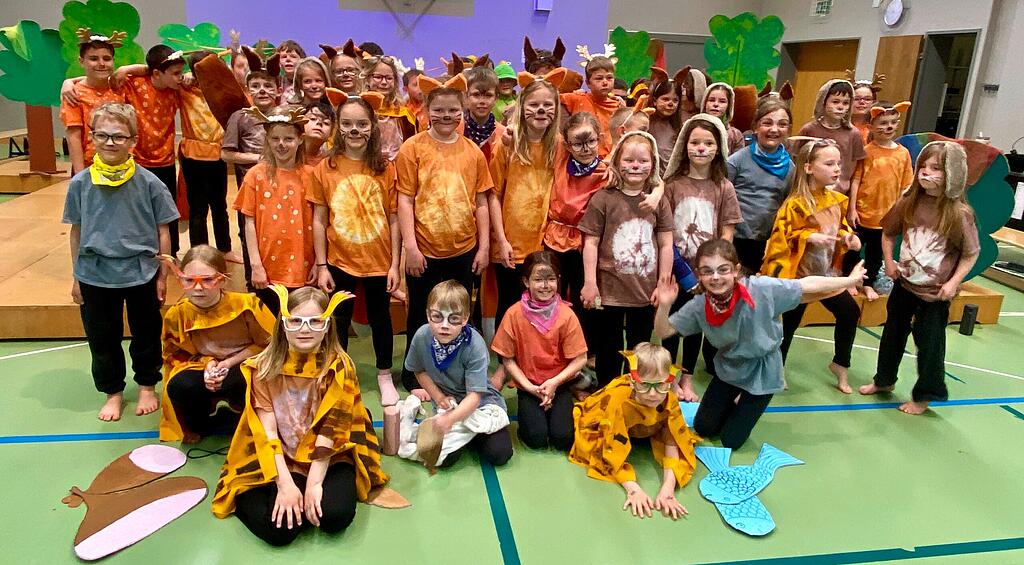 Die Erst- und Zweitklässler der Primarschule Rothenthurm brachten mit dem Musical «Zum Glück hat man Freunde» ein berührendes Stück auf die Bühne – öffentlich aufgeführt vor einem begeisterten Publikum. 53 Kinder verwandelten die Halle in einen lebendigen Wald voller Tiere, Musik und Freundschaft. Ein Höhepunkt war das Lied «Chlini Händ», das die Botschaft der Aufführung unterstrich: Gemeinsam kann man viel erreichen. (zvg)
