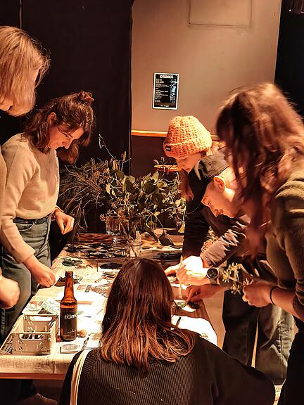 Mit einer musikalischen Überraschung machte Shem Thomas den Rahmen des Anlasses komplett. Im Anschluss hatten alle die Möglichkeit Postkarten mit Tannästen, Efeu oder Haselblüten zu stempeln. Beim Apero entstand ein reger Austausch, und das gemütliche Zusammensein wurde genossen. (zvg)