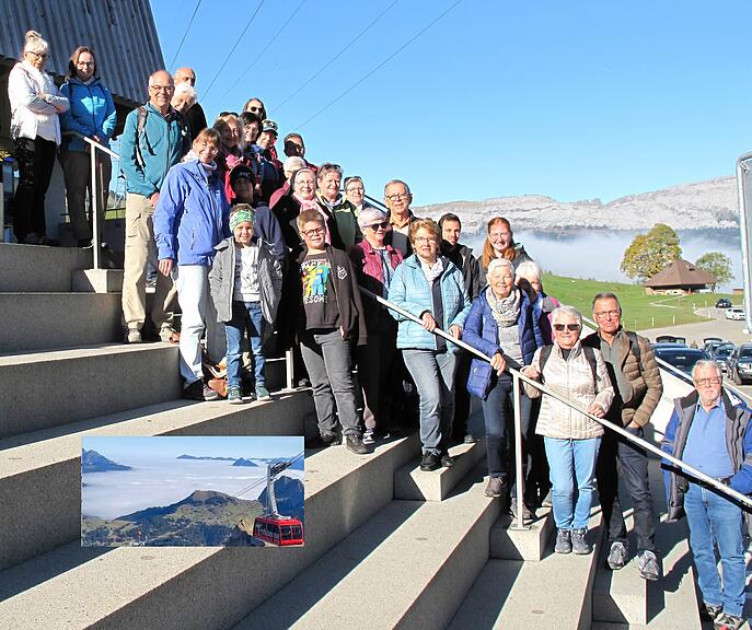 Bei bestem Wetter genossen kürzlich 29 Mitglieder und Gäste auf dem Brienzer Rothorn den ausserordentlichen Ausflug des Samaritervereins Brunnen-Ingenbohl. Wunderbar was das Nebelmeer, beeindruckend die Aussicht. Zum Greifen nah, sah man sämtliche Schwyzer und Berner Alpen. Bis auf wenige machten alle den kurzen Aufstieg auf den Gipfel auf 2348 Meter über Meer. Ein besonderes Erlebnis war die Rückfahrt mit der Dampfbahn durch die herbstlichen Wiesen und Wälder runter nach Brienz. Anschliessend ging es mit dem Car nach Hause. (zvg)