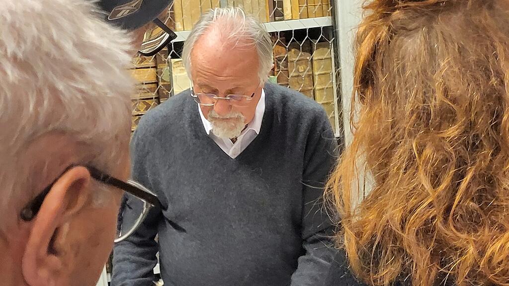 Werner Oechslin zeigt den Besuchenden die Sammlung der Bibliothek.