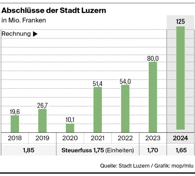 Erstaunlich ist der Rekordabschluss 2024 auch, weil die Stadt gleichzeitig noch die Steuern gesenkt hat, nämlich von 1,7 auf 1,65 Einheiten. Wäre der Steuerfuss 2024 gleich geblieben, wäre der Gewinn noch viel höher ausgefallen.