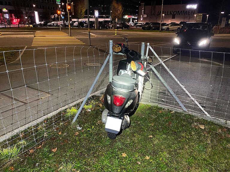 Nach einer Wende beim Einkaufszentrum Zugerland fuhr der Rollerfahrer wieder in Richtung Cham zurück. Dabei überquerte er eine Sperrfläche und nutzte zeitweise die Gegenfahrbahn. Schliesslich fuhr er auf den dortigen Aldi-Parkplatz und prallte dort in einen Zaun.