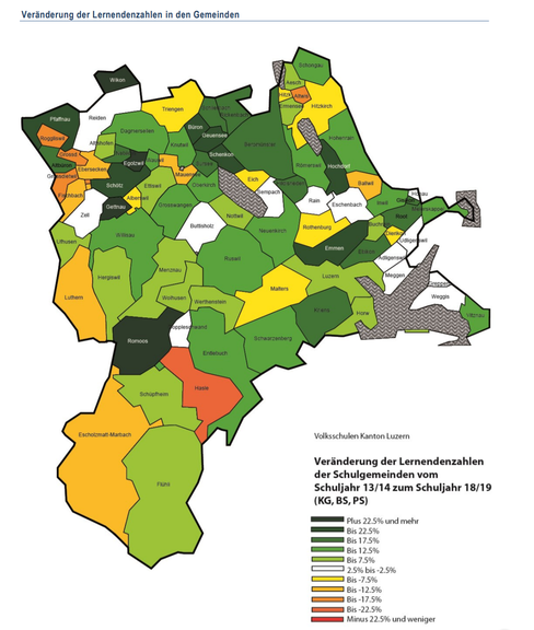 Im Schuljahr 2013/14 zählte der Kanton Luzern 38'600 Schüler an den Volksschulen, im aktuellen Schuljahr sind es knapp 40'150. In den letzten fünf Jahren nahmen also insgesamt über 1500 Kinder mehr am Unterricht einer Volksschule teil.