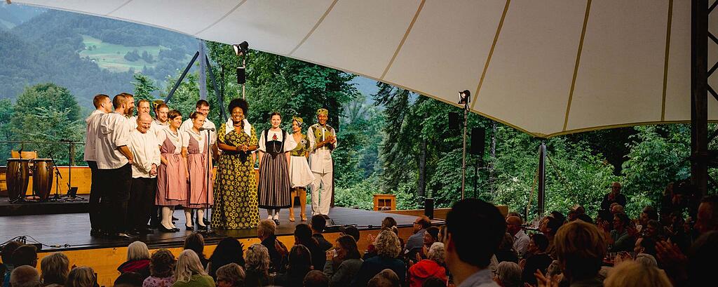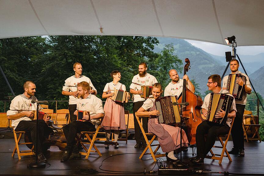 Für urchige, bodenständige Volksmusik sorgten Bodäständix, die mit Schwyzerörgeli in allen Grössen, Jodelgesang und ihrem typischen Charme das Publikum zum Schmunzeln und Staunen brachten. Besonderes Aufsehen erregte ihr traditioneller Balztanz, das Gäuerlen.