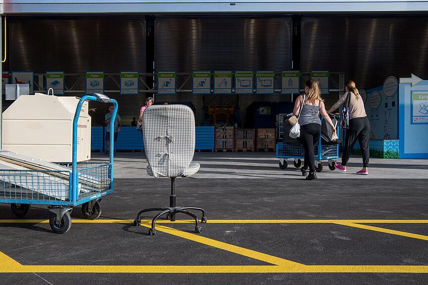 Auch Irene aus Luzern gehört zu jenen, die am Tag Eins auf der Matte stehen. «Ich bin sehr froh, hier die Mitarbeiter vom Ökihof in Emmen wieder zu sehen», sagt sie. «Durch die altbekannten Gesichter fühle ich mich gleich wieder wie daheim.» Sie ist hier, weil sie vergangenen Freitag in Emmen unverhofft vor verschlossenen Ökihof-Türen stand. Der neue Standort störe sie jedoch keineswegs: Abfall sei schliesslich Abfall.