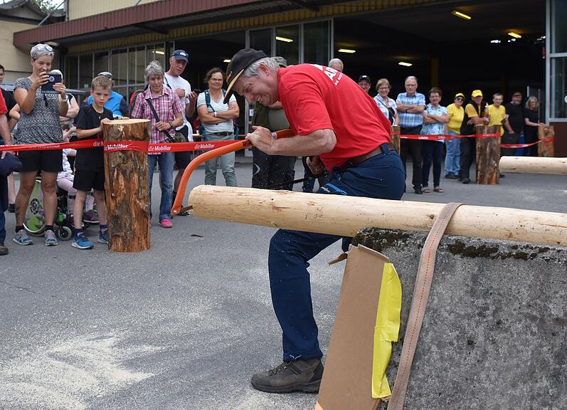 Grosses Lob ernteten die Organisatoren von Beat Buser, der mit 24 Wettkämpferinnen und Wettkämpfern aus Eptingen BL angereist war. Für Kobi Herger war es ein ganz besonderer Tag. Am Absenden wurde er zusätzlich geehrt für das Erreichen der 100. Kopfkranzauszeichnung an Säge- und Spaltwettkämpfen.