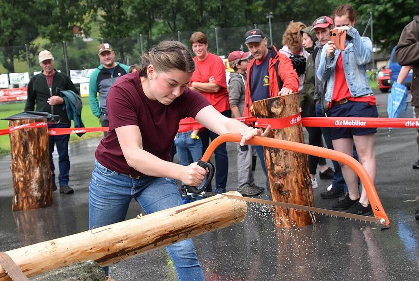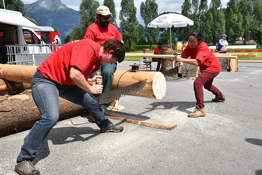 Spannende und für die zahlreichen Zuschauer attraktive Wettkämpfe gab es mit der Waldsäge. Hier startete man in drei Kategorien, nämlich Herren, Damen und gemischtes Doppel. In der Herrenkategorie verteidigten Kobi Herger junior und Beni Ziegler senior ihren Schweizer-Meister-Titel aus dem Jahr 2018 knapp erfolgreich. Sie erledigten die zwei Schnitte von rund 35 Zentimeter Durchmesser in 35,266 Sekunden oder 1,45 Sekunden schneller als Stefan Buser, Buckten BL, und André Wullschleger, Thürnen BL.