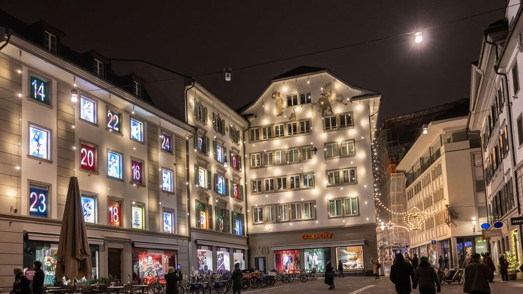 Der Adventskalender am Mühlenplatz gehört in diesem Dezember zu den neuen Blickfängen in der Luzerner Altstadt. Die kunstvoll restaurierten Fenster erstrahlen seit dem 1. Dezember an der Fassade von Coop City und verwandeln den Platz während der gesamten Adventszeit in ein «stimmungsvolles Märchenland», heisst es in der Beschreibung beim Verein «Weihnachten in Luzern». Täglich öffnet sich um 18 Uhr ein neues Fenster, begleitet von einem festlich beleuchteten Weihnachtsbaum. Einzelne Fenster leuchteten allerdings länger als bewilligt.