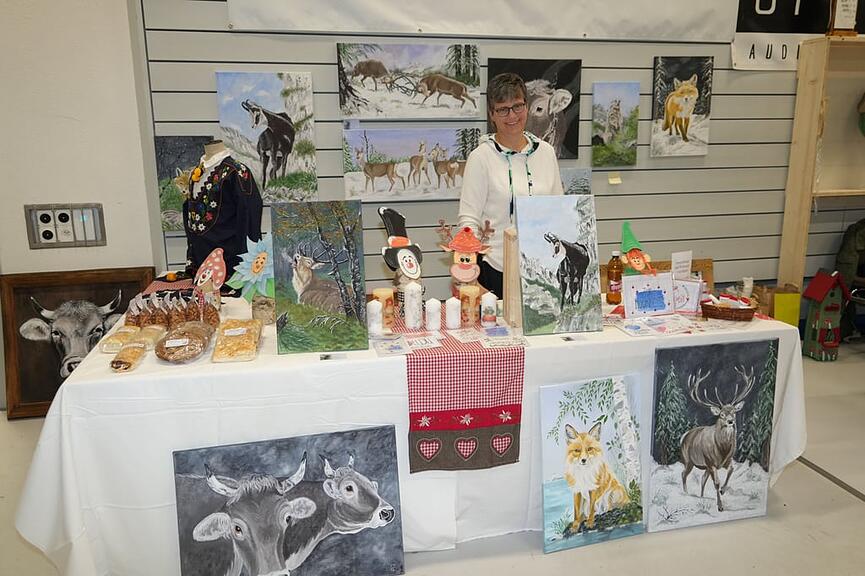 Heidi Wunderlin, eine seit Langem in Spiringen wohnhafte Künstlerin, stellte eine ansehnliche Anzahl ihrer Aquarellbilder mit Sujets aus dem Schächental und Umgebung bestens präsentiert in einem Schulzimmer aus. Erstmalig war auch Marlen Gisler-Arnold mit einem Stand mit ihren Acrylbildern vertreten.