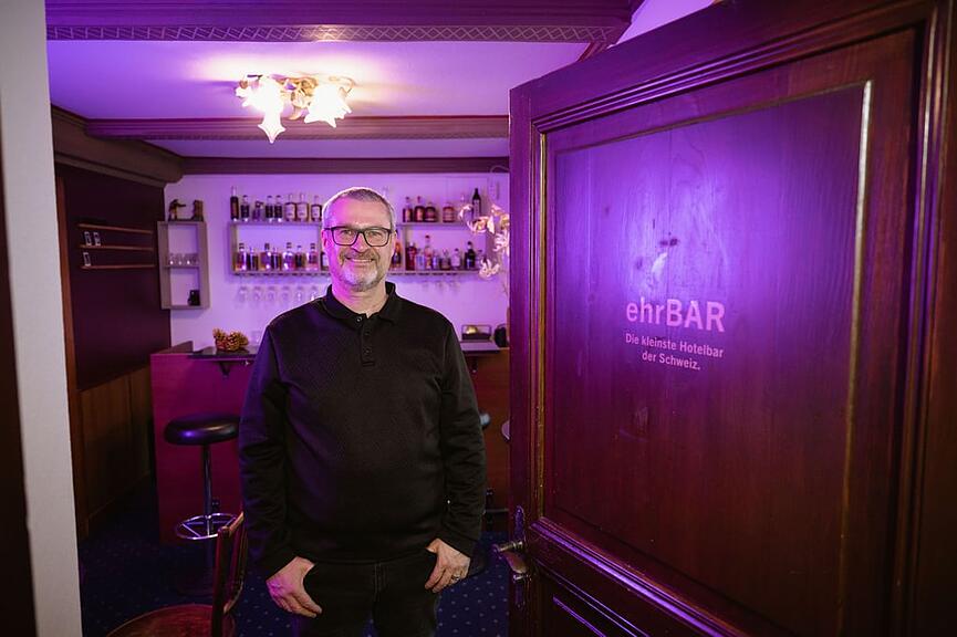 Um eine «volle Hütte» zu haben, braucht Gastgeber John M. Rusterholz lediglich acht Gäste. Die neue «Ehrbar» im Hotel Höfli in Altdorf ist mit ihren acht Plätzen die wohl kleinste Hotelbar der Schweiz.