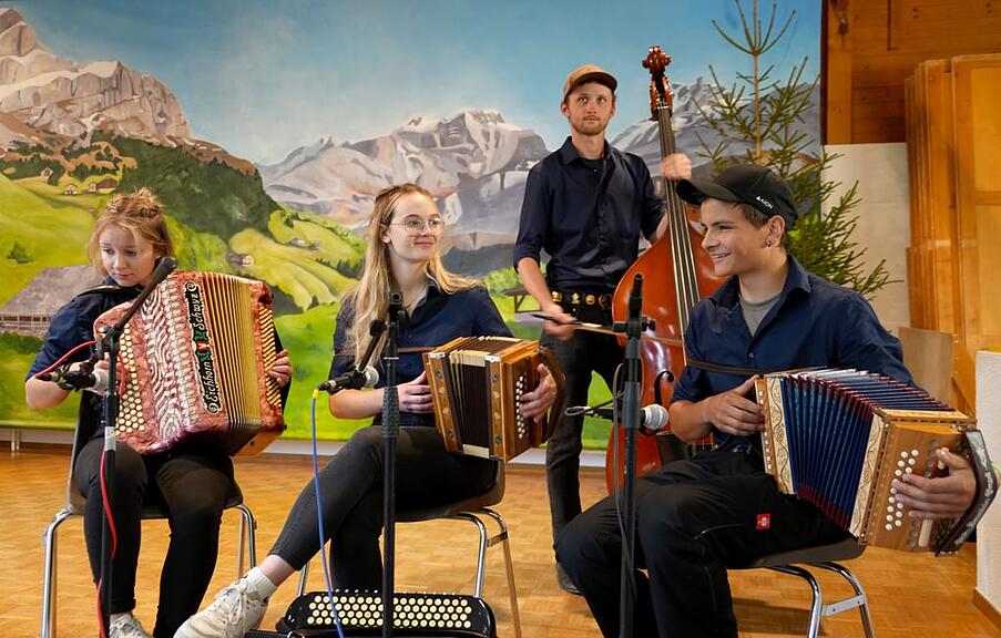 Das Ländlertrio Echo vom Gamperstock freuen sich zusammen mit dem Stubetä-OK und dem Alpina Team freuen sich auf viele gemütliche, musikalische Stunden. (fis)