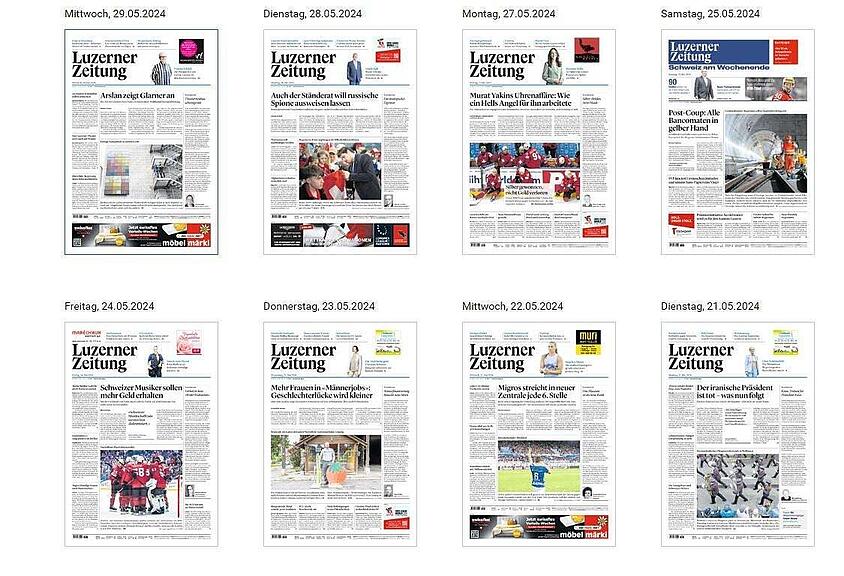 Internationale, nationale und regionale Aktualitäten verpassen Sie natürlich auch an Fronleichnam nicht. Auf «luzernerzeitung.ch» und auf der LZ-App bleiben Sie auf dem Laufenden. Wir danken Ihnen für Ihr Interesse und wünschen spannende und unterhaltende Lektüre. (mme)
