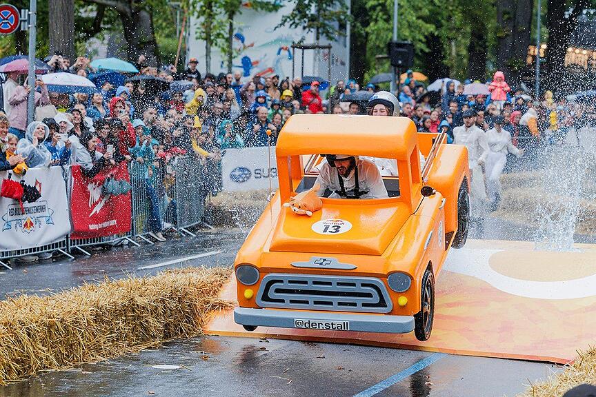 Das beste Gesamtpaket bot dabei ein Team aus dem Kanton Obwalden, das unter dem Motto «Gemeinsam rasen wir dem Sieg entgegen» angetreten ist. Mit dem klangvollen Namen «Hinter dem Lenkrad» und ihrem Gefährt «A Clockwork Orange», ein nachgebauter Chevrolet 1957, konnte die argentinische Familie die Jury auf allen Ebenen überzeugen und holte sich wie vorausgesagt den Sieg. Ihr zweites Gefährt «Raclette auf der Flucht 2.0» wusste ebenfalls zu gefallen, schaffte aber keine so saubere Fahrt.