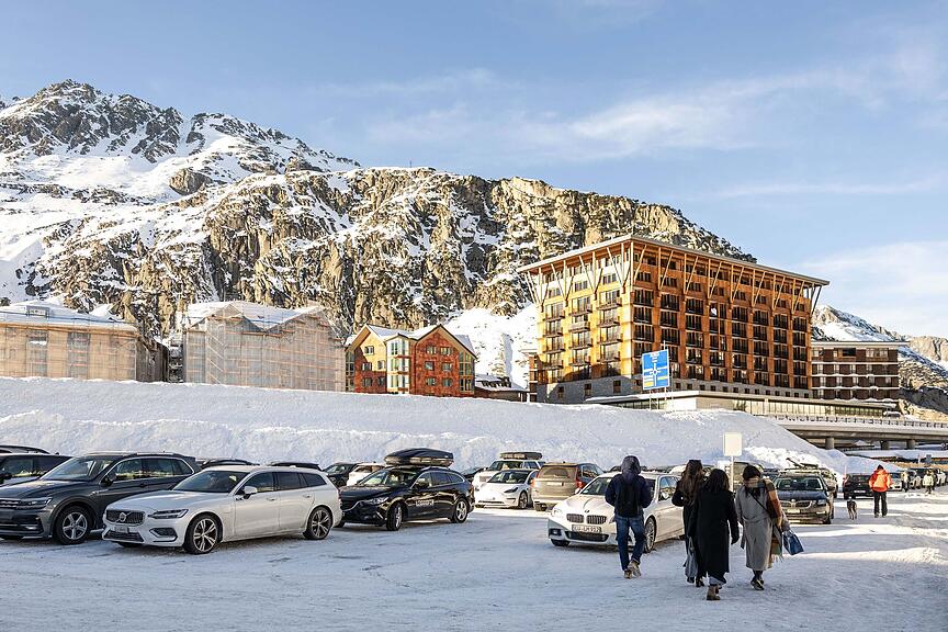 Wohl oder übel kehrten wir um und fanden auf die Tour in Richtung Andermatt zurück. Schliesslich erreichten wir einen Hügelvorsprung. Zum ersten Mal hatten wir freie Sicht auf das gesamte Dorf. Der Ausblick war ernüchternd. Während sich die ersten Bauten des hier tätigen ägyptischen Investors noch gut ins Dorfbild einbetteten, wirkte der neue Hotelkomplex gleich daneben ausladend und protzig. Das hatten wir nun also von der klaren Sicht hier oben. Wir nahmen es mit einem Schulterzucken hin. Zum Glück waren wir zuvor ja auf Abwege geraten.