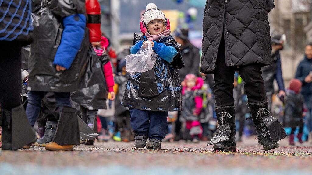 Wie viele Menschen jeden Alters am Nachmittag des Schmutzigen Donnerstags am oder entlang des Umzugs im Herzen der Stadt unterwegs waren, ist schwer zu sagen. Einer schätzt, dass weit über 3000 Schülerinnen und Schüler auf den Beinen waren. Dazu kommen noch die vielen Guggenmusiken, die für weitere Farbtupfer im Umzug sorgten.