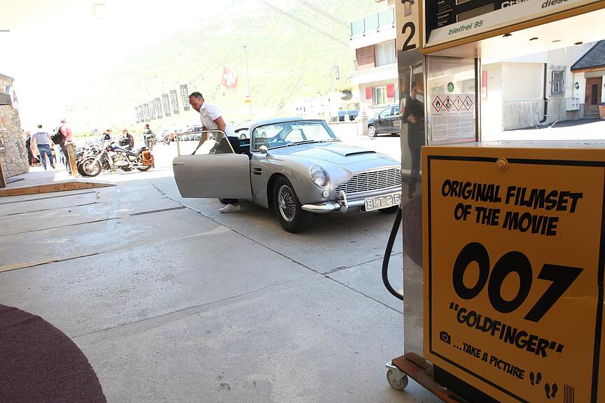 Unvergessen sind die Szenen aus «Goldfinger», sie faszinieren bis heute. «James Bond ist ein Teil meines Lebens», sagt der Zürcher Christoph Blaser. «Als ich geboren wurde, kam bereits der vierte Bond-Film heraus. Als Kind und Teenager habe ich immer dem Moment entgegengefiebert, bis wieder ein Neuer ins Kino kam.» Der Bond-Fan wollte es sich deshalb nicht nehmen lassen, den Aston Martin DB5 an den Originaldrehorten am Furkapass und in Andermatt mit eigenen Augen zu sehen. Auf dem Abstellplatz oberhalb des Hotels Belvedère bietet sich dazu die erste Gelegenheit. Der dröhnende Motor erschüttert die Magengrube, in der Luft liegt der unverkennbare Duft des Benziners.