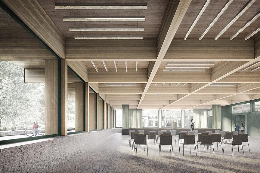 Die Schule der Zuger Architekten Hans-Peter Ammann und Peter Baumann wurde 1967 bis 1970 gebaut. Eine statische Überprüfung der Gebäude hat ergeben, dass aufgrund der Setzungen im Baugrund und deren Auswirkungen auf die Statik eine Erweiterung und Sanierung nicht sinnvoll machbar ist. Das Projekt wird nun in zwei Etappen realisiert – Rückbau der bestehenden Gebäude und Neubau. Geplant ist, mit den Bauarbeiten im Frühjahr 2022 zu beginnen.