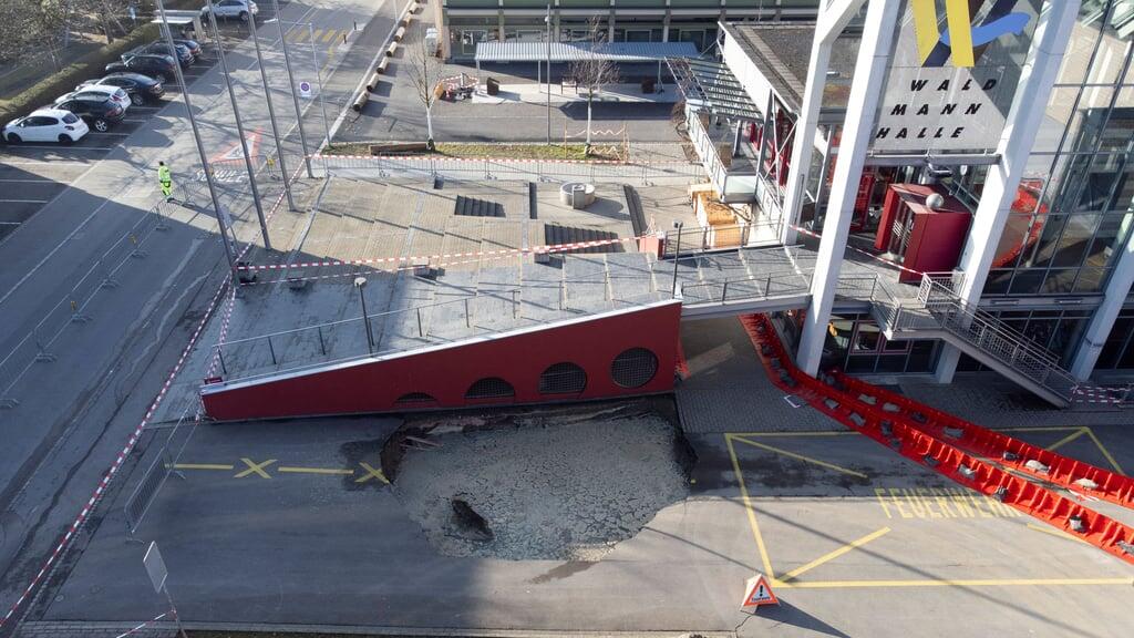So sieht das Loch vor der Waldmannhalle von oben aus