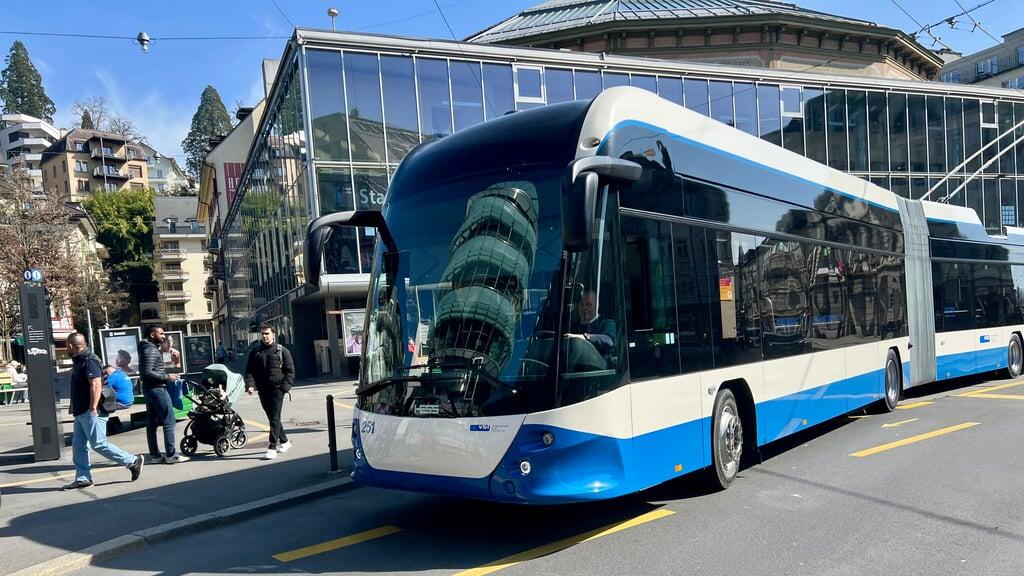 Das ist der erste neue Batterie-Trolleybus, der in Luzern unterwegs ist.