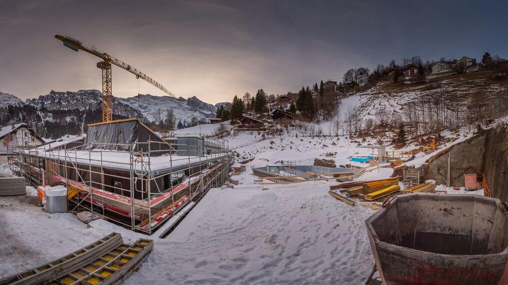 Von Weitem betrachtet, könnte ein Auswärtiger annehmen, dass es sich um eine beliebige Baustelle handelt. Vor Ort wird aber schnell klar, dass hier am Sonnenberg, gut zehn Fussminuten vom Bahnhof Engelberg entfernt, eine neue Badi entsteht. Die Hüllen der Aussenbecken sind schon zu erkennen. Hier entstehen ein Nichtschwimmerbecken und ein Multifunktionsbecken. Je nach Bedarf stehen zwischen einer und drei Bahnen fürs Schwimmen zur Verfügung, so auch fürs Schulschwimmen. Am Rande dieses 3,7 Meter tiefen Multifunktionsbeckens thronen drei Sprungtürme, einen Meter, drei und fünf Meter hoch. Bis Mutige hier aber vor der Engelberger Bergkulisse einen Kopfsprung machen können, müssen sie sich noch bis Mai 2027 gedulden. Bis dann sollte das neue Schwimmbad Sonnenberg fertig sein, wie Mitglieder des Gemeinderates und des Projektbeirates am Mittwoch an einem Baustellenrundgang aus erster Hand erfuhren.