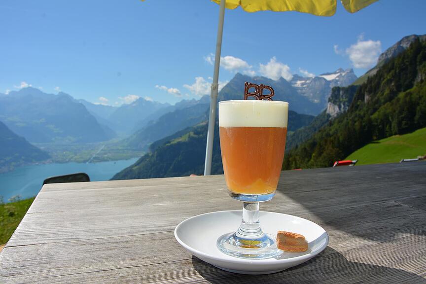 Hinauf kommt man innert 8 Minuten mit dem Bähndli, das Alpbeizli befindet sich nur 20 Meter von der Bergstation entfernt. «Für ältere Gäste, die die «Alp Weid» besuchen möchten, ist das ideal. So erhalten auch sie Gelegenheit, die einzigartige Aussicht auf sich wirken zu lassen», sagt Immer-Bacher. Unterdessen kommt eine Gruppe junger Leute verschwitzt oben an. Wer nämlich fit ist, kann auch den Bergweg nehmen. Eine, die das vor fast jedem Arbeitsantritt tut, ist Teammitglied Gaby. An diesem Montagmorgen traf ich sie aber im Bähndli an. «Heute bringe ich frisches Gemüse und Obst zur Verarbeitung für die feinen hausgemachten Weid-Spezialitäten. Ich habe nach der Pensionierung hier oben meinen Traumjob gefunden», verriet sie auf der Fahrt.