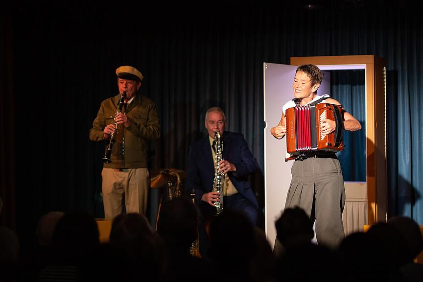 Genauso bewegend und spannend wie das Buch war die Aufführung, an der viele Verwandte und Freunde der Autorin und Darsteller teilnahmen. Die drei Akteure Cornelia Montani, Joe Fenner und Daniel Schneider vom Theater im Kornhaus Baden zeichneten erzählend, spielend und musizierend wichtige Episoden aus Klärlis Leben nach. Das meiste spielt sich im letzten Jahrhundert in den Zwischenkriegsjahren bis nach dem Zweiten Weltkrieg ab, wobei im Stück die damaligen Lebensbedingungen locker einfliessen.