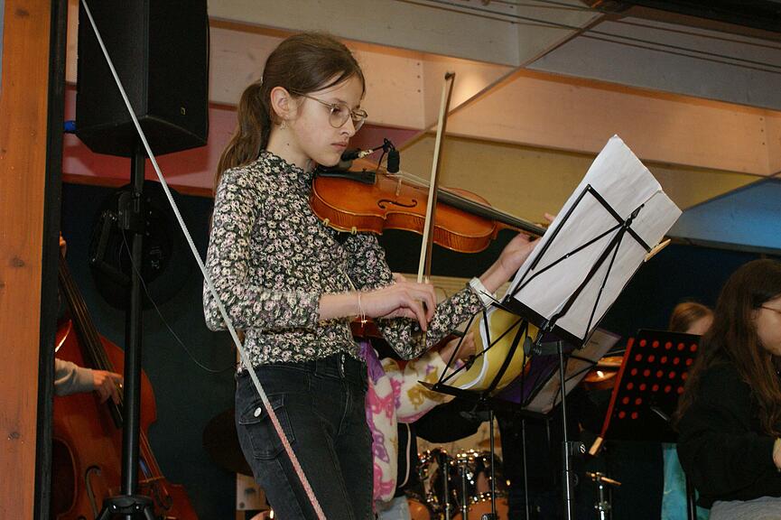 Nayla Vukalic aus dem Ensemble der Musikschule Stansstad spielte am Montagmorgen beim Wellerman-Song mit.