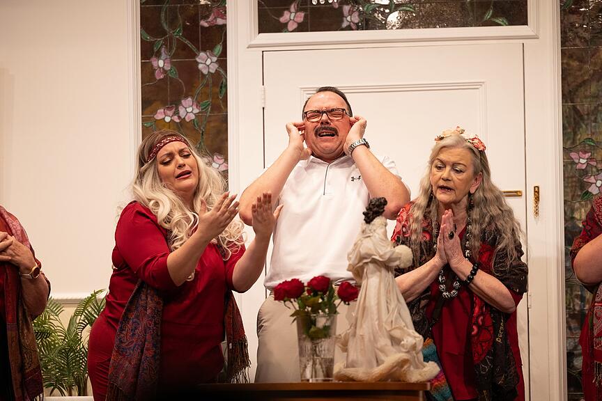 «Es isch spannender, öper anderem zuezluegä bim Schaffä, als sälber zschaffä.» So schaute am Freitagabend das Publikum in einem vollen Pfarreizentrum in Weggis die Premiere des Theaters. Die Zuschauerinnen und Zuschauer hatten einen direkten Einblick ins Wohnzimmer der Siegenthalers und bekamen alles mit.