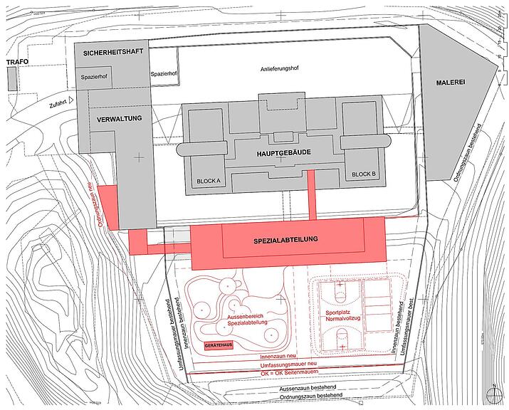 (haz) Für das Hauptgebäude der Justizvollzugsanstalt Bostadel (JVA Bostadel) aus dem Jahr 1977 besteht laut Medienmitteilung der Zuger Baudirektion dringender Sanierungsbedarf. Dieser umfasst bauliche, energetische und betriebliche Aspekte. Mit einem Erweiterungsbau innerhalb der Gefängnismauern, der während der Sanierung verdichtet genutzt wird, kann der Betrieb der JVA Bostadel durchgehend aufrechterhalten werden. Nach der Gesamtinstandsetzung des Hauptgebäudes soll der Neubau als Spezialabteilung für alte und langzeitverwahrte Gefangene genutzt werden können.