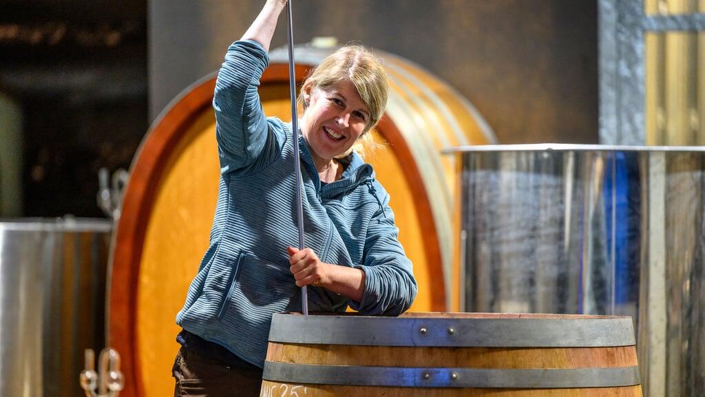 Karin Holzgang, hier bei der Vinifikation ihres Divico-Rotweines.