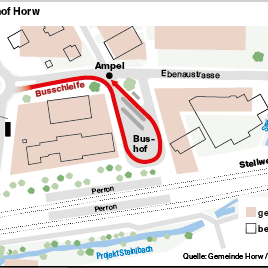 In Horw ist das Umsteigen vom Bus auf den Zug ziemlich umständlich: Es gibt zwar eine Bushaltestelle «Horw Bahnhof» - doch diese liegt in einiger Entfernung vom eigentlichen Bahnhof. Die Gemeinde Horw will dies ändern: Das Projekt Bushof Horw sieht vor, dass die Busse künftig direkt auf dem Bahnhofplatz halten. Doch das Projekt ist seit Jahren blockiert wegen mehrerer Einsprachen.