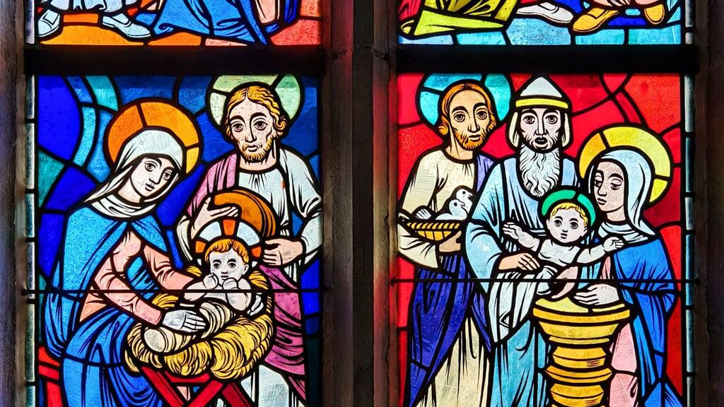 Unter der Kapelle St. Andreas in Cham finden wir frühmittelalterliche Bauzeugnisse, die zu den ältesten im heutigen Kanton Zug gehören. Die Mauerrelikte datieren ins 9. Jahrhundert und gehören zu einer Vorgängerkirche der bestehenden Kapelle aus dem Jahr 1488. Ohnehin ist die Andreaskapelle ein historisches Juwel, vereint sie doch mehrere Epochen unter einem Dach. Zu den jüngsten Ausstattungsmerkmalen gehören die Glasgemälde in den Fenstern – drei im Kapellenschiff und drei im Chor. Sie alle stammen vom Obwaldner Maler Albert Hinter (1876-1957). Die in den Fenstern des Schiffs und den seitlichen Chorfenstern eingesetzten Rechteckscheiben zeigen biblische Motive, die dem heiligen Andreas gewidmet sind. Sie sind 1944 entstanden.