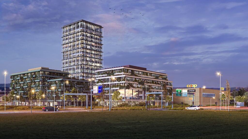 Ein Grossprojekt mit budgetierten Gesamtkosten von 50 Millionen Franken benötigt viele Pläne. Entsprechend umfangreich ist ein Baugesuch, das derzeit bei der Abteilung Planung und Hochbau der Gemeinde Cham aufliegt. Die Kartonkiste beinhaltet eine Vielzahl Dokumente für das Einkaufszentrum, das auf dem Areal Hinterfeld Süd entstehen soll. Dazu gehört auch eine neue Tankstelle mit Shop.