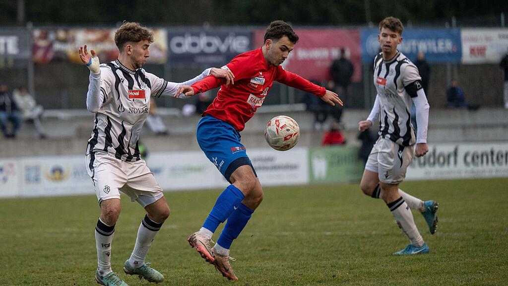Laurin Vögele (Bildmitte, hier gegen den FC Basel U 21) hätte sich gegen Paradiso fast in die Torschützenliste des SC Cham eingetragen.