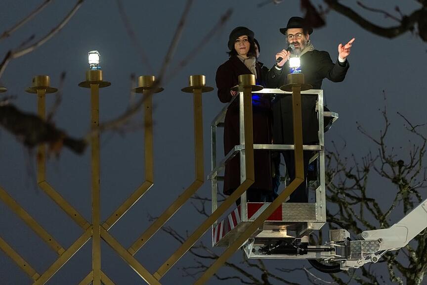 Für viele Jüdinnen und Juden bietet das achttägige Chanukka-Fest eine willkommene Gelegenheit, um Gäste einzuladen und dabei auch spezielle Festspeisen zuzubereiten: Viele Juden essen an diesen Tagen gerne Krapfen, Berliner oder Kartoffelpuffer, die sie «Latkes» nennen. Und natürlich wurden auch am Lichterfest am Sonntag zahlreiche Berliner an die anwesenden Gäste verteilt.
