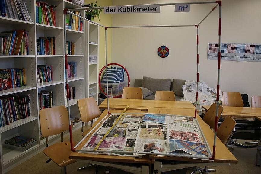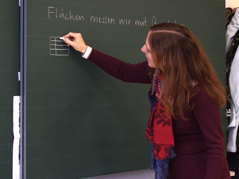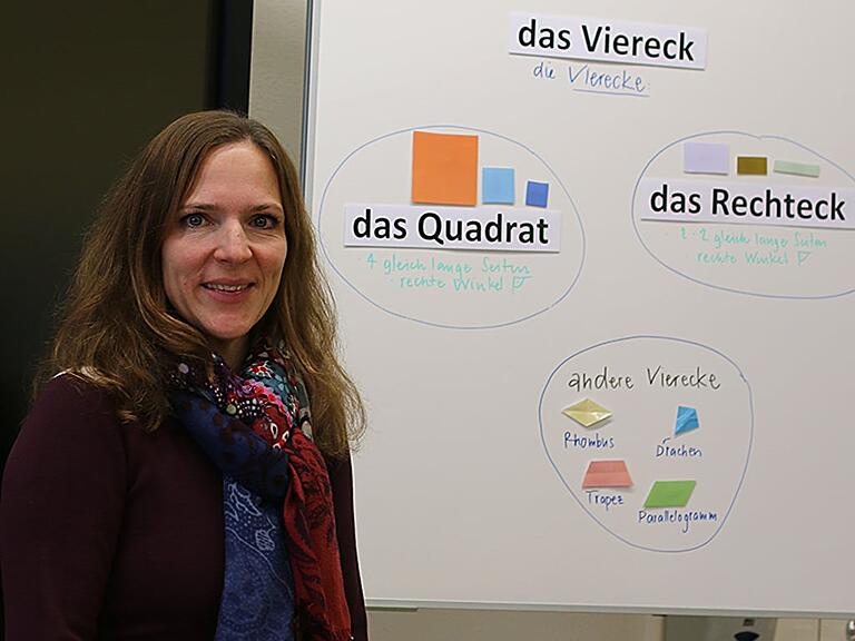 «Flächen messen wir mit Quadraten.» Käthi Elmiger steht im hellen Klassenzimmer des Hünenberger Primarschulhauses Ehret A und schreibt den Satz an die Tafel. Darunter zeichnet sie ein Quadrat und teilt es in kleinere Quadrate, mit denen sich die Fläche berechnen lässt. Seit 22 Jahren ist Elmiger Primarlehrerin, seit 12 Jahren unterrichtet sie in Hünenberg eine dritte und eine vierte Klasse. «Mathematik ist ein wunderbares Fach», sagt sie. «Es hilft beim Denken, Ordnen und Orientieren.»