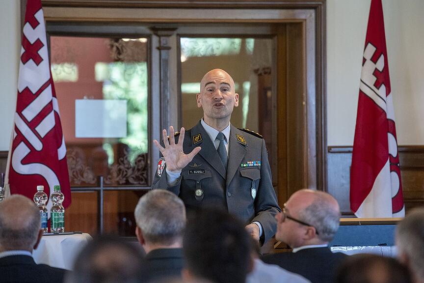 Als Gast konnte Kommandant Divisionär Daniel Keller am Freitag, 1. September, im Jugendstil-Hotel Paxmontana in Flüeli-Ranft Thomas Süssli, den Chef der Armee, begrüssen. Die beiden Gastgeberkantone waren vertreten durch Regierungsrat Christoph Amstad, Vorsteher Sicherheits- und Sozialdepartement Obwalden sowie Regierungsrätin Karin Kayser-Frutschi, Vorsteherin Justiz und Sicherheitsdepartement Nidwalden. Das Grusswort richtete Regierungsrat Amstad zum Thema Leadership an die Gäste.