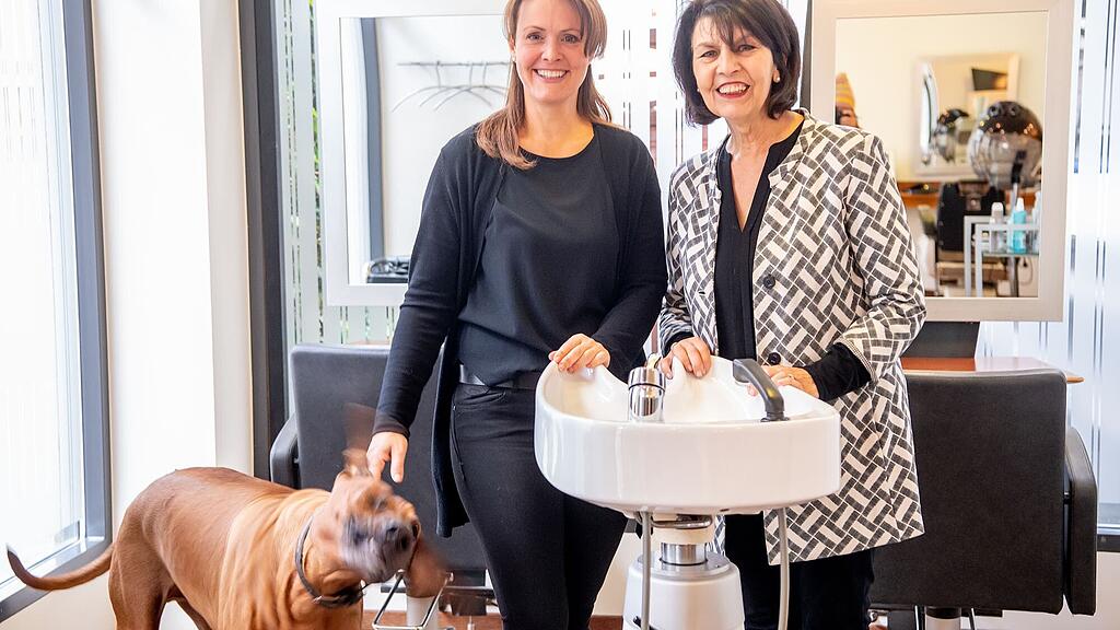 Chantal und Ruth Baillo mit Hund Dajo im Coiffeurgeschäft. (Bild: Nadia Schärli (Luzern, 3. November 2021))