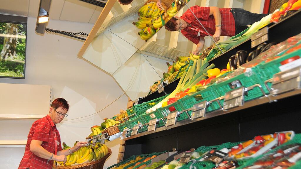 Kurz vor Wiedereröffnung füllt Jacqueline Zangger das Gemüseregal auf. (Bild: Matthias Piazza (Sarnen, 3. August 2021))