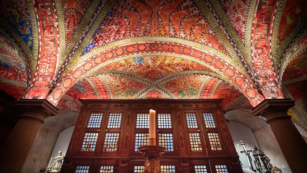 Wenn Urs-Beat Frei, Kurator des Luzerner Stiftsschatzes, bei Führungen die Türen zur Schatzkammer öffnet, tut er dies meist im Dunkeln. Nur eine grosse Kerze erhellt dann die kunstvoll bemalten Wände und Decke des Raumes und reflektiert das Gold der ausgestellten Schätze hinter den geöffneten Schranktüren.