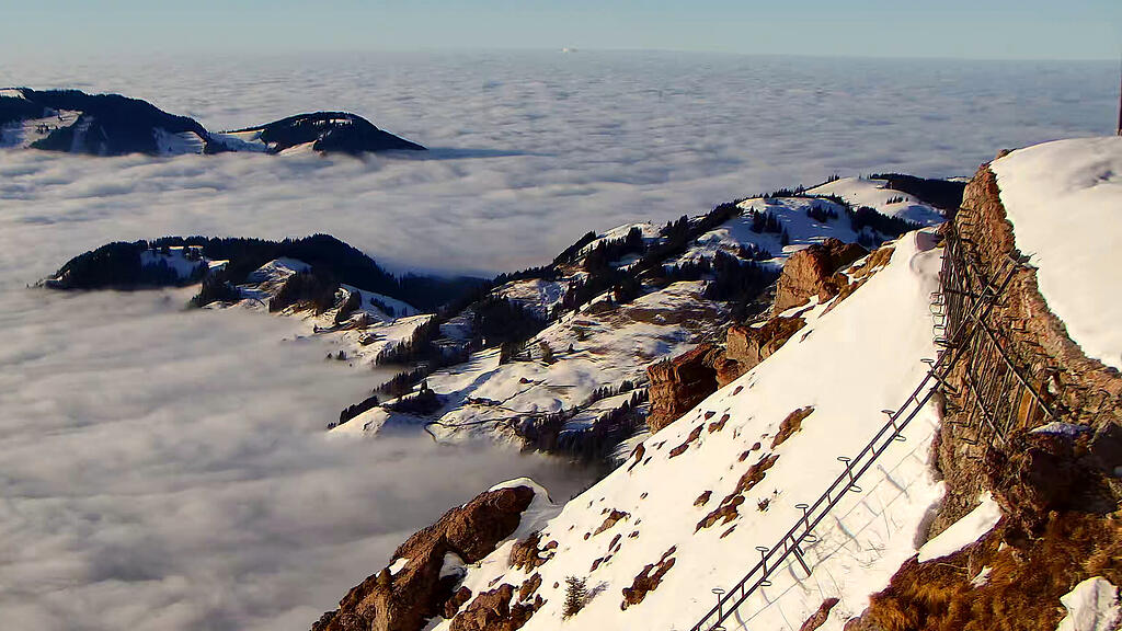 Weitblick auf dem Grossen Mythen: Das Nebelmeer am heutigen Montag.