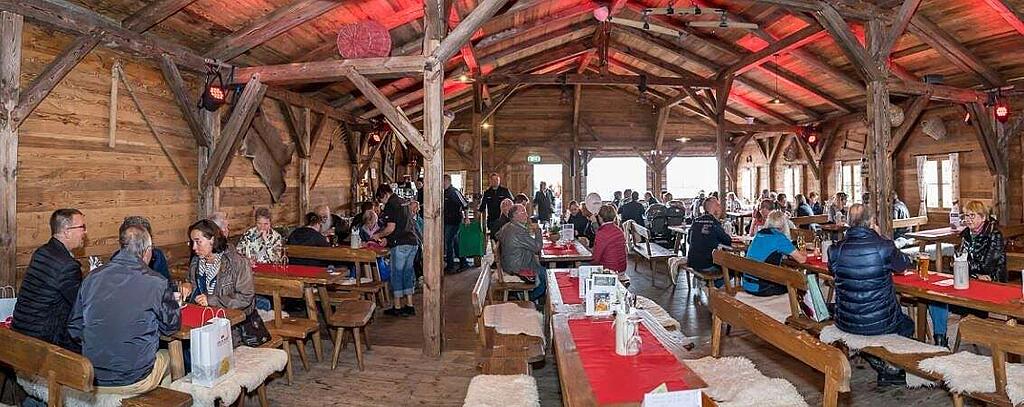Das Restaurant Chalet in der Halle 9 ist eine gemütliche Holzbeiz mit Terrasse, die zum Verweilen einlädt. Es bietet traditionelle Schweizer Küche und Livemusik am Abend.