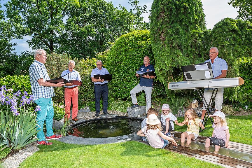 Vier Männer stehen in einem Garten und singen aus voller Kehle. Ein fünfter dirigiert sie vom E-Piano aus – in gebührendem Abstand. Fünf Nachbarskinder sitzen am Boden, hören zu und spielen miteinander. Zwischendurch gibt’s spontanen Applaus von Balkonen in der Nachbarschaft und von zufällig vorübergehenden Spaziergängern.